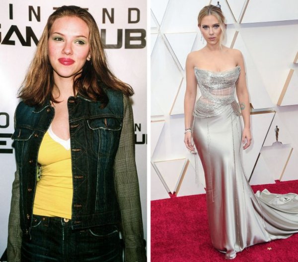 Скарлетт Йоханссон у 2001 році та сьогодні
