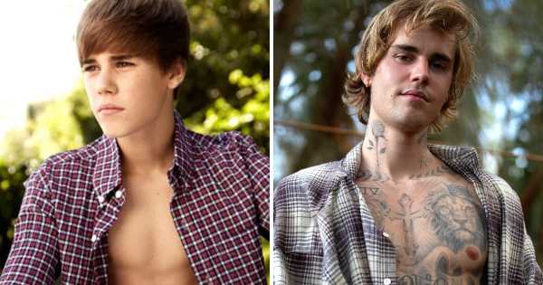 Дуже хлопчик і без натяку на татуювання в 2011 році і сьогоднішній співак, який забив практично все тіло.