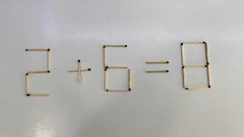 А зараз питання: куди прилаштувати цей непотрібний сірник, щоб усім було добре? Погляньте на результат після знака "дорівнює"… Зрозуміли?