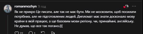 Дехто з користувачів став на захист посла фото: скриншот Threads