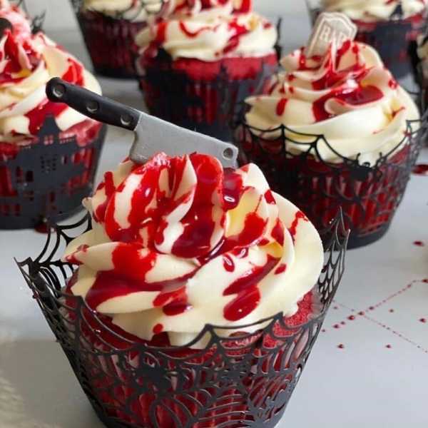 Основна забава дітлахів на Геловін – це випрохування солодощів. Малеча вдягається у моторошні вбрання та обходить оселі, збираючи ласощі. Дехто дарує їм звичайні солодощі з крамниці, а інші виготовляють тематичні солодощі у формі атрибутів свята. Для родичів та близьких господині випікають жахливі криваві пироги та тістечка з лячними очима.