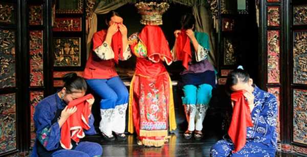 Народність туцзя — одна із 55 офіційно визнаних етнічних груп — досі зберегла цікаву традицію: перед весіллям наречена має плакати у присутності друзів та рідних, коли вони приходять у гості із подарунками. Плач – це не тільки емоційне вираження почуттів, що виникають при прощанні з минулим життям і будинком, але й спосіб віддячити друзям і батькам за їхню турботу. Плакати правильно дівчатка туцзя навчаються з дитинства, інакше на них чекає ганьба і висміювання. Втім, сучасність внесла свої корективи: якщо раніше наречена плакала місяць, то тепер їй достатньо одного дня скорботи перед весіллям.