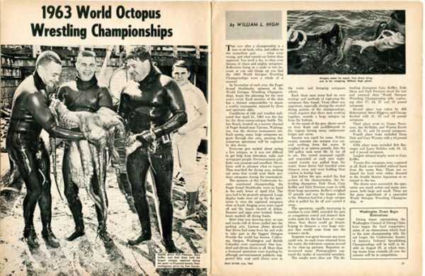 Найбільш масштабне змагання з реслінгу з восьминогами відбулося у квітні 1963 року у Такомі. Тоді в події взяли участь 111 аквалангістів, які змагалися з 25 величезними тихоокеанськими восьминогами, яких виловили в той же день. Вага деяких істот досягала 25 кг.