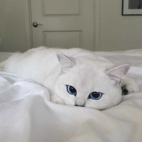 Біла шерсть у поєднанні з синіми очима справді роблять Кобі неймовірно красивим. Секрет приголомшливого кольору очей цього кота, який абсолютно нехарактерний для цієї породи, полягає в тому, що десь у роді Кобі затесався кіт іншої породи.
