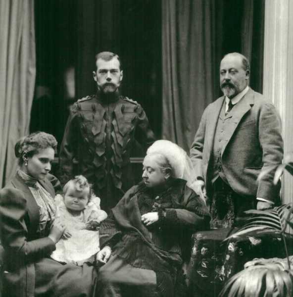 Королева Вікторія з чоловіком, онукою Олександрою Федорівною, російським імператором Миколою II та їхньою дочкою Ольгою./Фото: museivaticani.va