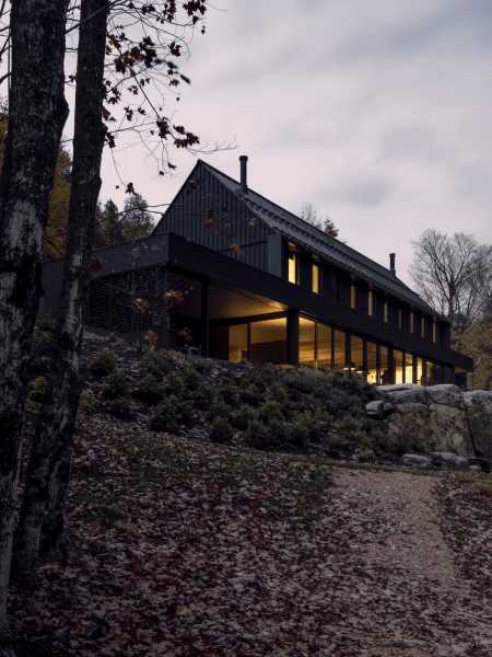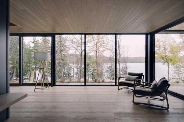 Подібно до обсерваторії, цей будинок може відвернути погляд своїх мешканців від визначальної природи стилістичного архітектурного підходу, щоб розкрити суттєвий аспект своєї ролі: становище десь у просторі. Розташована на озері Лак-Тремблан, одному з найвідоміших озер Квебека, ця ділянка була такою ж вражаючою, як і обмежувальні можливості.
