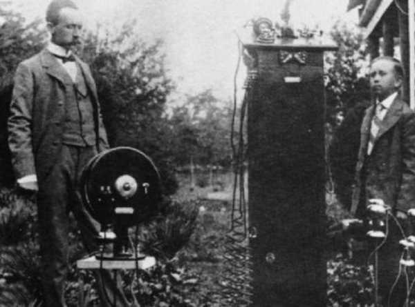 Ось так виглядав перший у світі мобільний телефон. На фото — його творець Натан Стаблфілд у 1902 році. З таким телефоном не погуляєш.