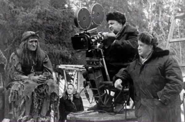 Георгій Мілляр, оператор Дмитро Суренський та режисер Олександр Роу на зйомках фільму-казки «Морозко», 1964 рік, СРСР