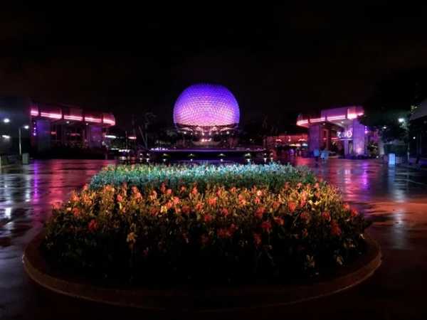 Ні, це Epcot, тематичний парк Всесвітнього центру відпочинку Уолта Діснея, який може виглядати досить незвичайно дощовими ночами.