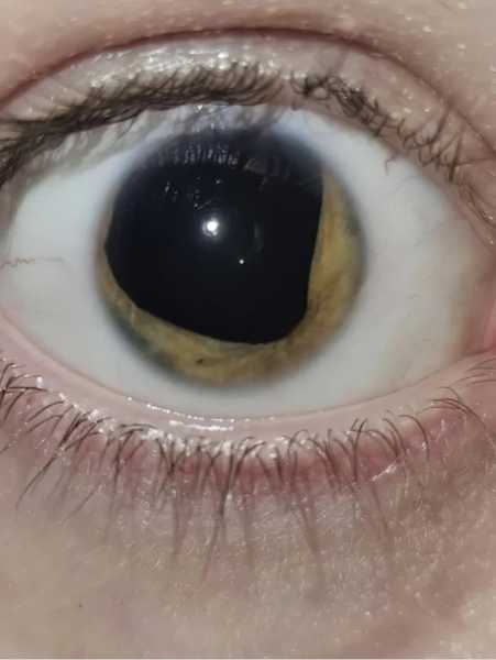 Це людина, якій у око потрапив шматок металу, його видалили, а в оці залишилося кільце іржі.