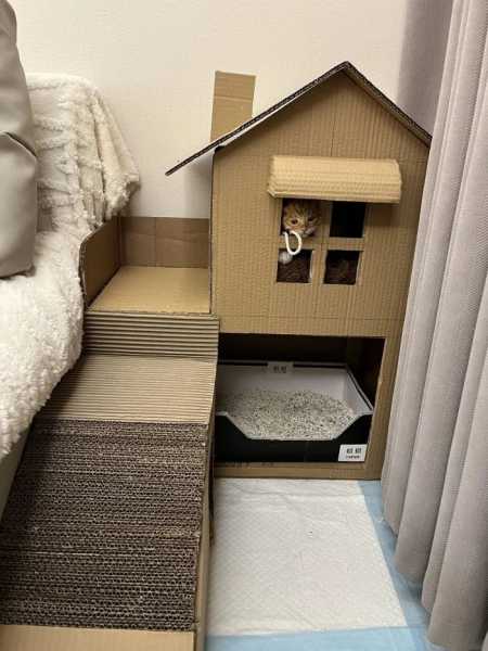 Дружина переконала мене зробити для наших котів двоярусне ліжко