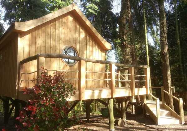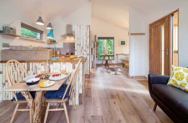 Цей крихітний дерев'яний котедж, який через кругле вікно на фасаді схожий на шпаківню, знаходиться на лісовій галявині в Сомерсеті, Англія.
