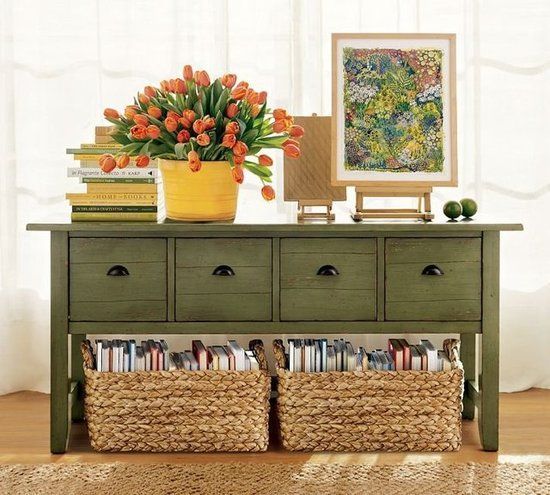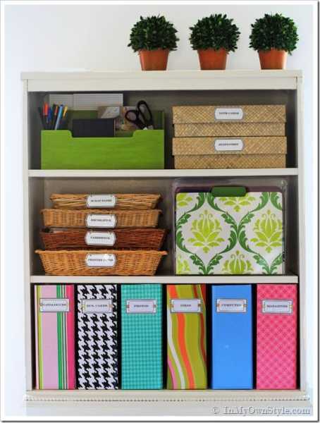 Варіантів для зберігання безліч, варто лише проявити креативність: картотеки, підвісні папки, кишені для взуття на двері (вони, між іншим, підійдуть не лише для взуття, але й різних дрібниць). Одяг можна зберігати за кольорами в окремих кошиках, а прикраси та біжутерію розвісити на вішалках для одягу. Зверніть увагу на невикористаний простір: у щілинах між меблями, під ліжком або над комодами чудово помістяться речі, коробки і полиці для їх розміщення.