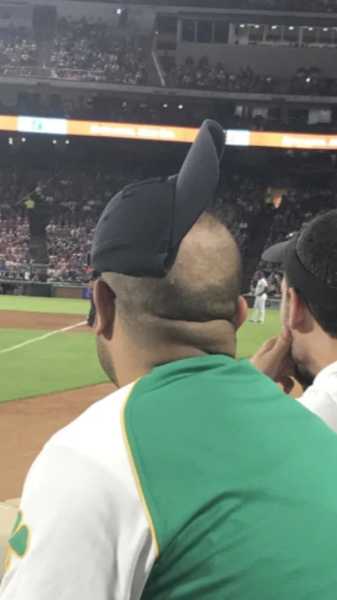 Тінь на його футболці створює ефект, ніби третього чоловіка додали у фотошопі.