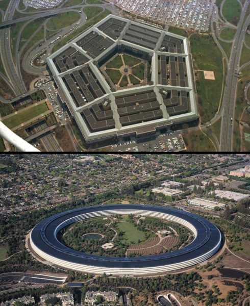 Пентагон на фоні головного офісу Apple.
