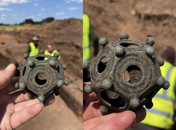 Бронзовий “римський додекаедр”, виявлений влітку 2023 року. 12-гранник провів у землі приблизно 1700 років. Знайдено під час аматорських розкопок в англійському графстві Лінкольншир.