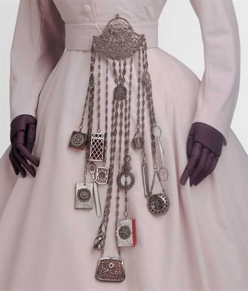 Шатлен, яким скористалася Олександра, принцеса Уельська. В комплект входять 13 аксесуарів, включаючи ножиці, флакон з ароматами, збільшувальне скло та блокнот. Зроблено у Англії, 1863-1885 роки.