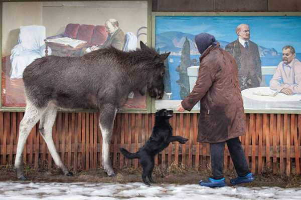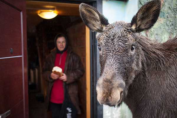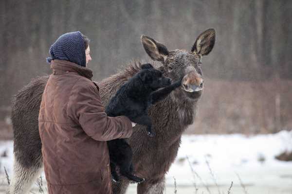 Рідко можна натрапити на такого екзотичного улюбленця – лось Гриша значно перевершує зростом свою власницю, проте зовсім не агресивний і за характером більше скидається на пса. Маленький лось виріс на фермі у невеличкому селищі Мінської області, і наразі його цілком можливо вважати прирученою істотою – Гриша відчуває себе цілком затишно серед людей і не тяжіє до лісу.