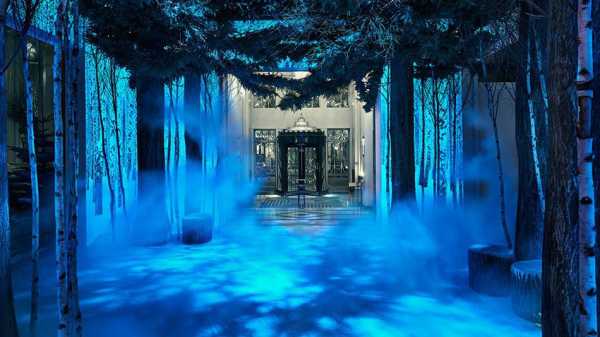 “Лісовий” ефект виходить за рахунок того, що світлові короби, встановлені в лобі, проектують чорно-білі фотозображення покритих снігом беріз. Під навісом із натуральної зеленої сосни штучні шотландські сосни перемежуються зі справжніми та сфотографованими березами та ялинками.