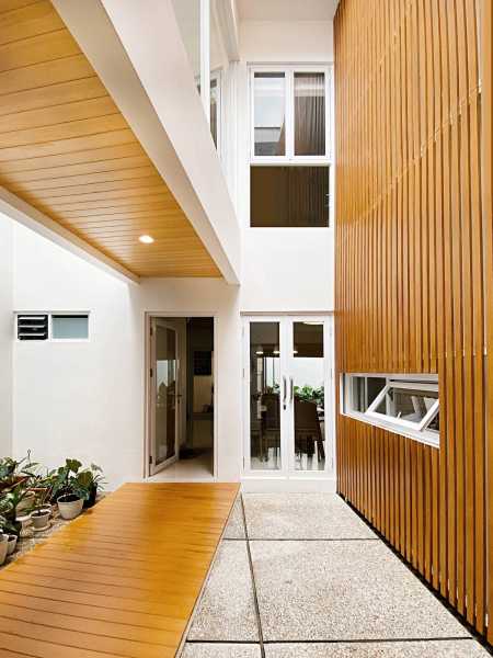 Проєкт Parhuis House, спроєктований Aaksen Responsible Aarchitecture, збудований у 2021 році в місті Джакарта, Індонезія. Двоповерхова житлова будівля для сім’ї площею 250 квадратних метрів з чітким поділом на функціональні зони розміщена на тісній земельній ділянці. Публічна зона знаходиться в передній частині споруди, а приватна – в задній.
