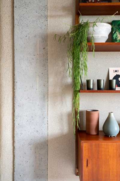 На площі 160 квадратних метрів були розміщені всі необхідні для комфортного життя сім'ї функціональні зони: громадський простір відкритого плану, що поєднує вітальню, їдальню та кухню, а також чотири спальні та робоча студія власника будинку, професійного гончаря. За бажанням замовника внутрішня програма будинку тісно пов'язана із зовнішнім світом, що візуально розширює інтер'єр і робить його особливо цікавим та динамічним.
