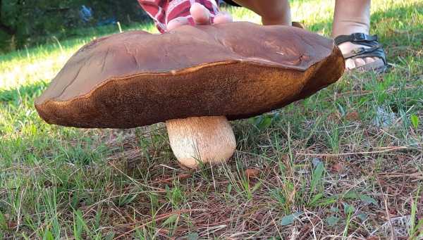 Під таким грибом можливо легко сховатися від сонця та дощу.