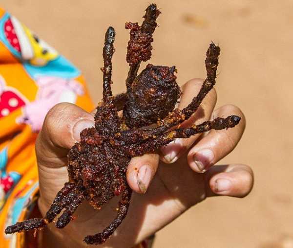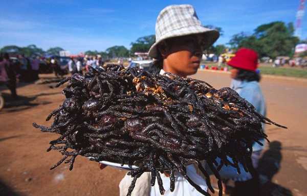 З 70-х років минулого століття, коли за режиму Пола Пота почався повсюдний голод, камбоджійці активно жеруть тарантулів. Тому нашестя павуків для них не так проблема, як привід пожерти на халяву вулиці просто завалені ласощами.