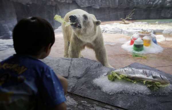 А у полярного ведмедя Інука із Сінгапуру подвійне свято. 25 грудня він відсвяткував свій 26 день народження. На фото іменинник демонстративно викидає гарнір, не бажаючи забивати шлунок будь-якою нісенітницею. Адже на нього чекає найсвіжіша рибина!