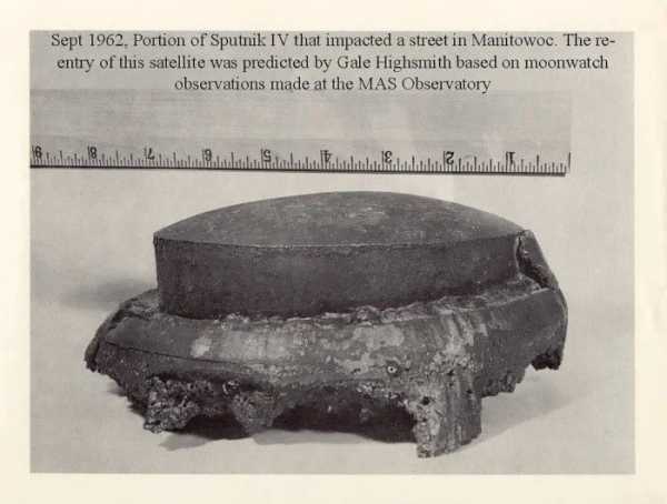 15 листопада 1963 року в проїжджу частину 8-ї вулиці Манітовока було вмонтовано латунне кільце, що позначало місце падіння уламка «Супутника-4».