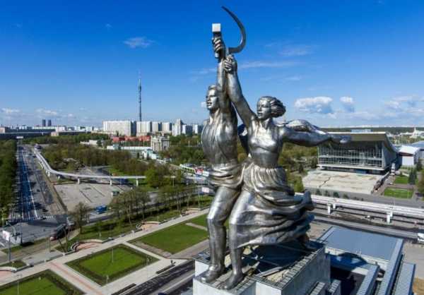 Пам'ятник втілює ідеал та символ радянської доби. Стоячи пліч-о-пліч, хлопець і дівчина разом піднімають над головами серп і молот. Спочатку скульптуру заввишки 24,5 м створювали для міжнародної Паризької виставки 1936 року. Проектом займалися архітектор Борис Йофан та майстер пластичного втілення Віра Мухіна. Пам'ятник монументального мистецтва втілює союз робітничого класу та селянства, які разом змогли здійснити революцію в країні у жовтні 1917 року. Сьогодні «Робітник та колгоспниця» — московська визначна пам'ятка, що стала символом простого народу.