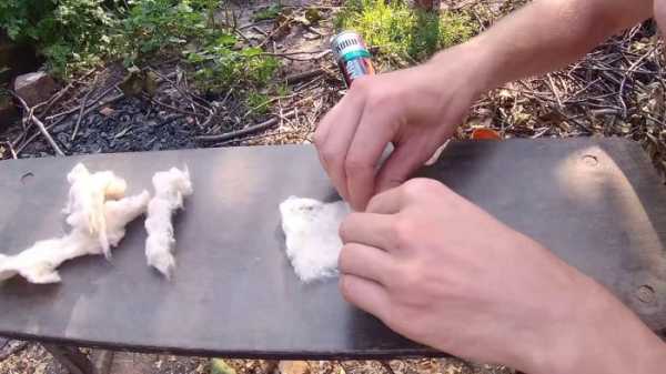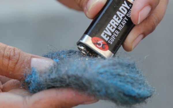 Вовняні речі – чудові для мандрівки на природу. Зокрема, й тому, що якщо поруч виявиться батарейка і не знайдеться сірників, то здобути вогонь можна саме з вовни. Доведеться довго водити контактом батарейки по шерсті, проте через деякий час матеріал почне ледь жевріти, а потім і зовсім займеться. Найкраще для цього годиться батарейка 9 Вт.