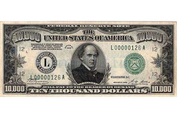 У період з 1934 по 1945 роки в США випускали купюри номіналом у $500, $1 000, $5 000 і $10 000. Створені вони були виключно для міжбанківських розрахунків і були обміняні на золото. У 1969 році Річард Ніксон заборонив випуск національної валюти номіналом більше $100 і вивів з обігу великі купюри.