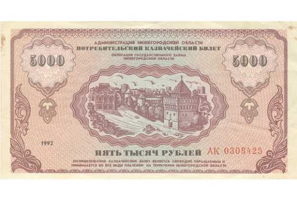 На початку 90-х у Нижегородській області катастрофічно не вистачало готівки. Тоді Борис Нємцов, який на той час обіймав посаду губернатора області, вирішив надрукувати власні казначейські квитки, які одночасно були б облігаціями держпозики.