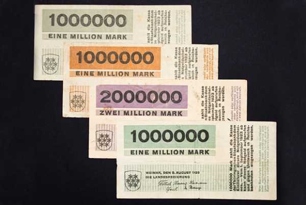 1923 року, коли німецька економіка була у тяжкій кризі, а середній рівень інфляції становив близько 25% на день, з'явилися нотгельди чи «екстренні гроші». Нотгельди випускалися неурядовими організаціями та органами місцевої влади. За законодавством вони були грошима, але були загальноприйнятим платіжним засобом біля їх звернення.