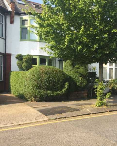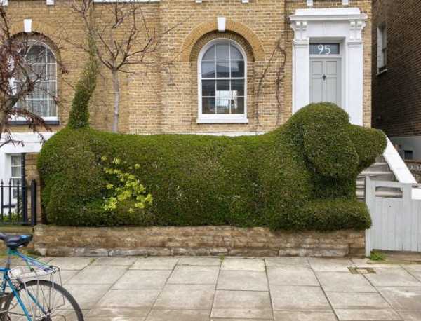 Користувач Твіттера під ніком Баррі (@scyrene), що родом із Шотландії, виклав у себе світлину живоплоту, котрий зроблений у вигляді дрімаючого песика. Зображення оперативно зібрало понад 60 тисяч відміток “подобається”, більше 10 тисяч поширень і безліч коментарів, в яких люди почали представляти власні інтерпретації справдешніх шедеврів топіарного мистецтва – від слонів та морських хижаків до коней і міфічних істот.