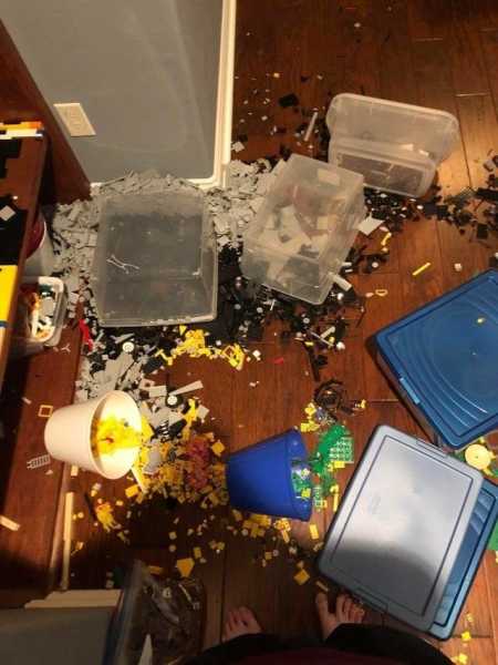 Вранці пролунав гуркіт, це кіт дістався до коробок з Лего.