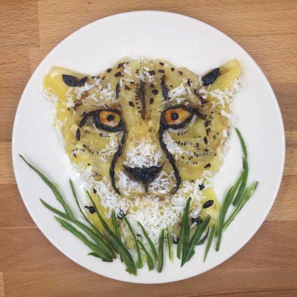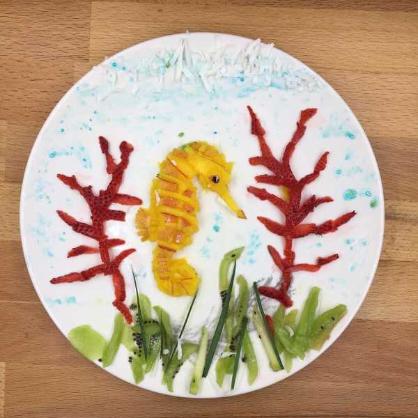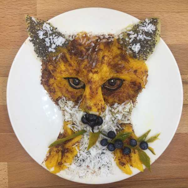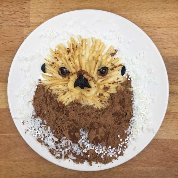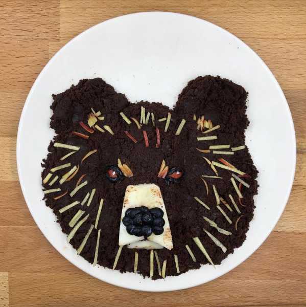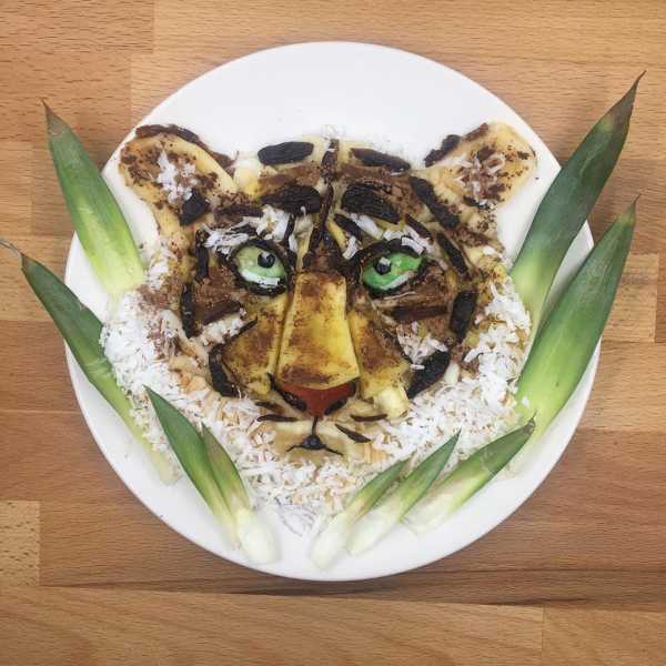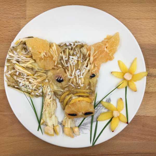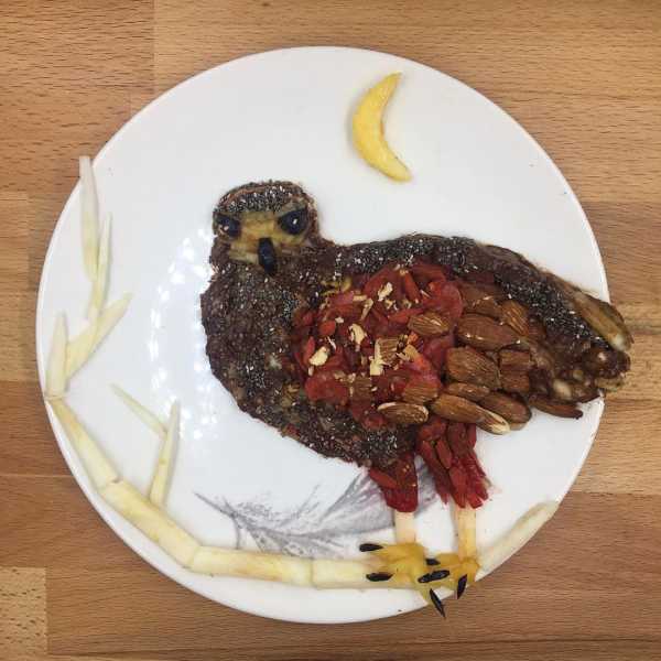 Це означає, що він прокидається кожного ранку з насолодою від нового оформлення сніданку, як от лев, складений зі шматочків ананасу та оладок, або ж папуга, зроблений з яблука, малини та жовтого солодкого перцю.
