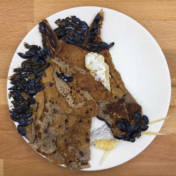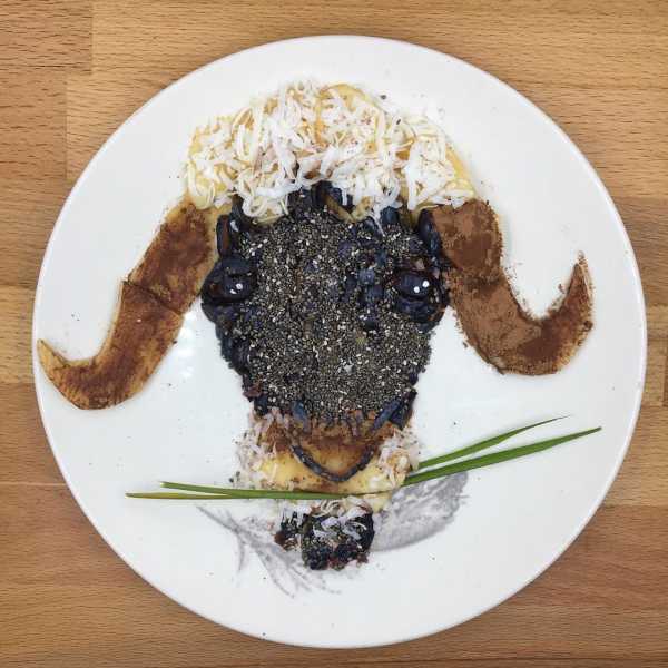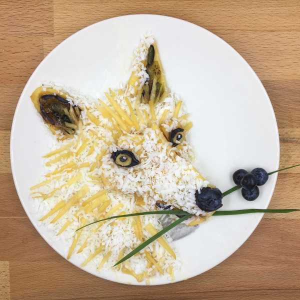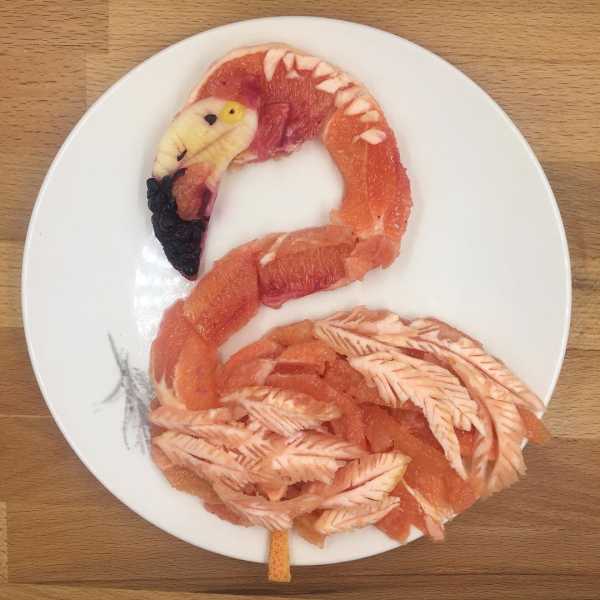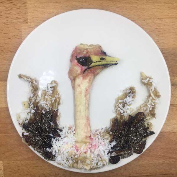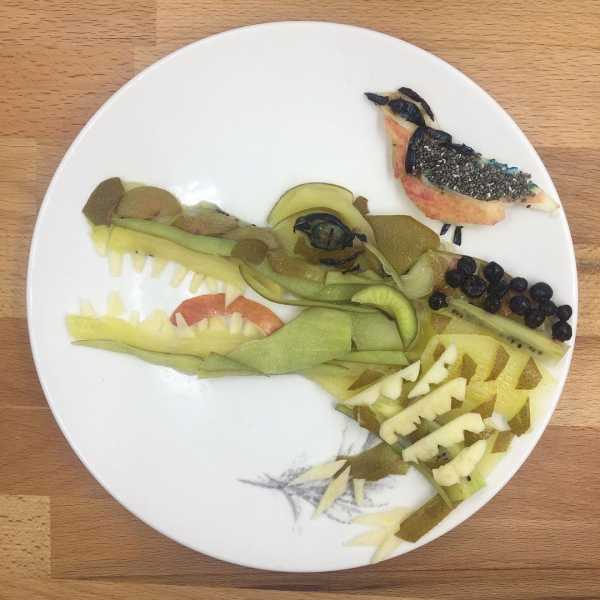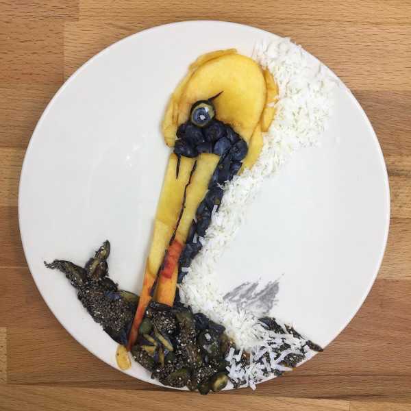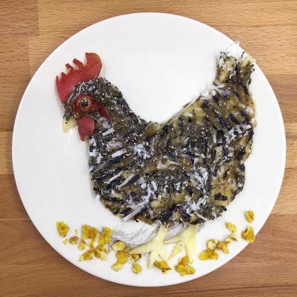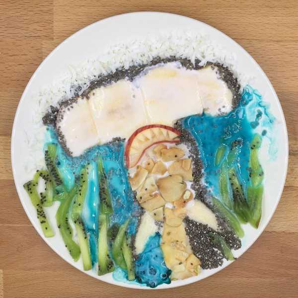Це означає, що він прокидається кожного ранку з насолодою від нового оформлення сніданку, як от лев, складений зі шматочків ананасу та оладок, або ж папуга, зроблений з яблука, малини та жовтого солодкого перцю.