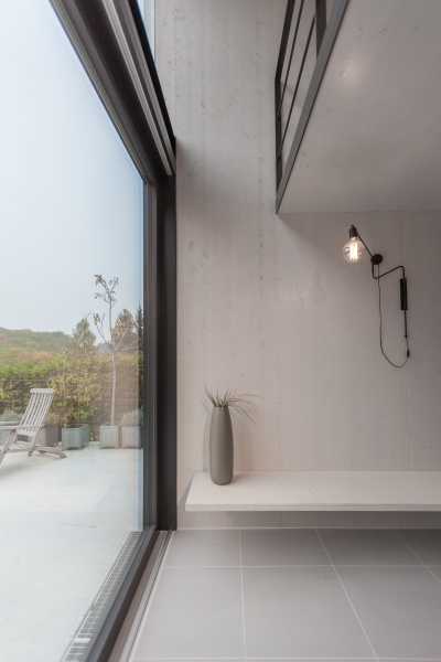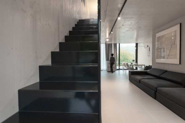 Насправді «складна» ділянка з крутим схилом та невеликим простором приваблювала творчі ідеї. Найважливішим архітектурним завданням було відобразити фантастичний вид Віденського лісу і створити максимальний зв'язок із природою. Для створення приватності будинок був повністю закритий з боків, а велика кількість скла спереду та ззаду забезпечує максимальну відкритість. Погляд на ліс гарантує двоповерховий скляний фасад. Прихованим мотивом був плавний перехід між внутрішнім та зовнішнім.
