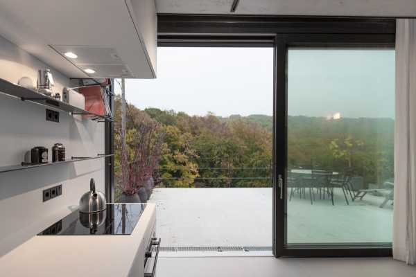 Будинок із особливостями. Будинок на сім'ю у Віденському лісі Австрії. Будинок такий же своєрідний, як і люди, які в ньому живуть. Шлях до будинку веде через мрійливий ліс із тридцятиметровими стволами. У цьому місці метрополія Відень здається далекою, але насправді опинитися в центрі можна за півгодини.