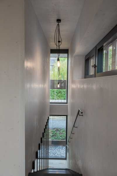За планування архітектори намагалися створити максимальний простір і сконцентруватися на головному. Насамперед, хобі та професії мешканців були включені в дизайн будинку. Пристрасть до книг та флористики призвела до того, що книжкові полиці були майстерно інтегровані в конструкцію, а тераси на кількох рівнях дають можливість розгортатися. Тут вони живуть зараз, в оточенні книг та ботаніки, історій з Віденського лісу та самого Віденського лісу.