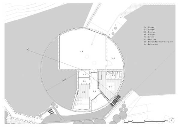 Ключовим моментом цього будинку є його дизайн, який змушує вас відчувати, що ви на відкритому повітрі. Відкритий простір заспокоює та розслаблює, знімає щоденний стрес та розумову втому та дає можливість сповільнитись та розслабитись. Кругла форма – це форма, що поєднує ландшафт і форма, що супроводжує нескінченні дії повсякденного життя. Внутрішнє подвір'я прорізає небо і відбиває сцени, що переходять з однієї кімнати в іншу, з одного простору в інше і від одного заняття до іншого. Щоб знизити споживання енергії, враховувалися характеристики будинку, починаючи з систем механічного охолодження, опалення, вентиляції та освітлення та закінчуючи плануванням різних кімнат та тканинами (стільникові штори тощо). У той же час важливо враховувати гаряче і холодне повітря, що випромінюється навколишнім середовищем, що істотно впливає на тепловий комфорт всього будинку. Беручи до уваги заходи щодо ізоляції високого рівня та зводячи до мінімуму різницю із зовнішньою температурою, було досягнуто комфортне теплове середовище. Комбінація вікон, що відкриваються вручну, і автоматично керованих систем променистого опалення та охолодження може створити індивідуально комфортне середовище для кожного члена сім'ї.