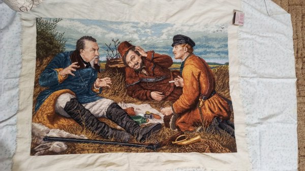 Хочу поділитись своєю вишивкою на репродукцію картини Перова «Мисливці на привалі». Розміри картини 78*52 см. Усього було витрачено 4,5 роки роботи.
