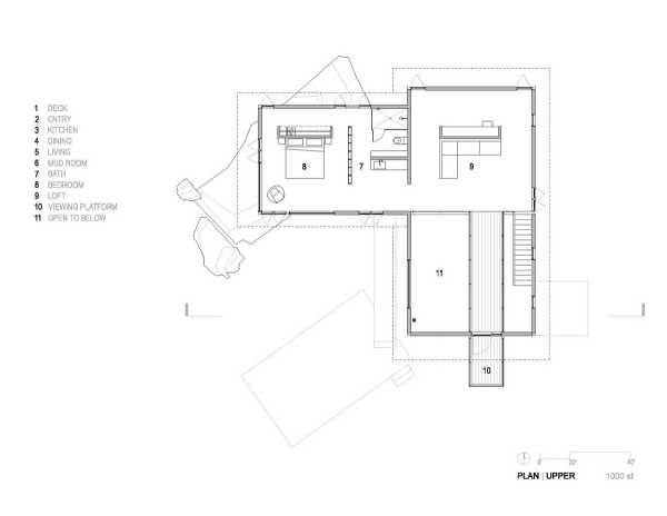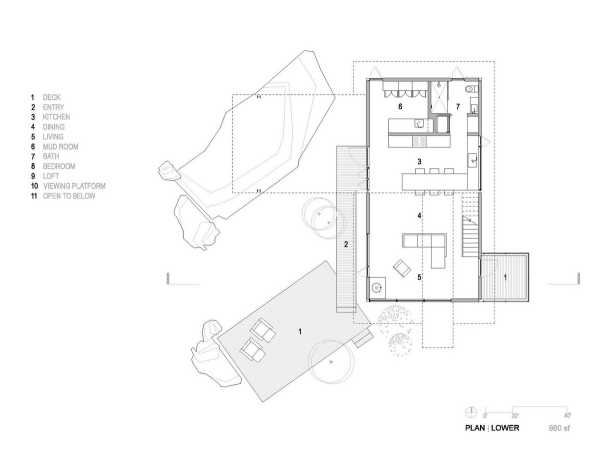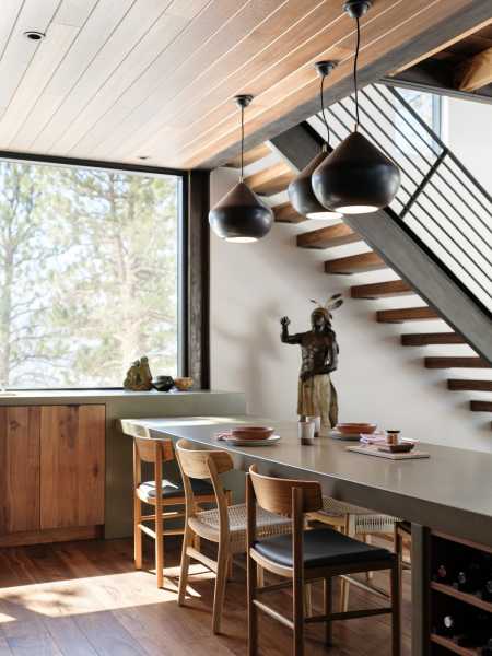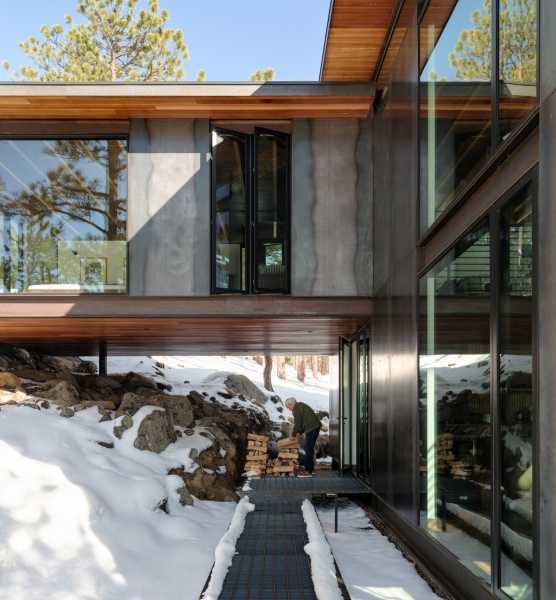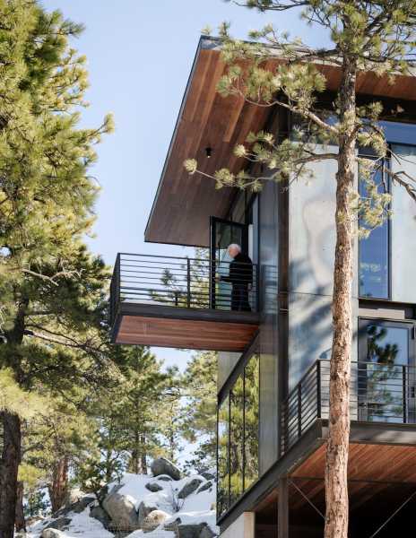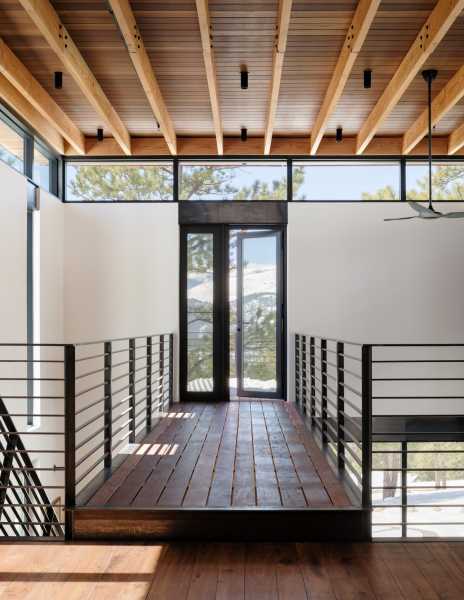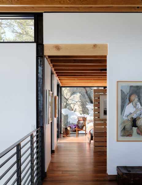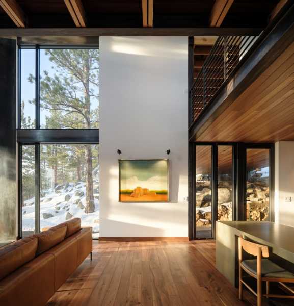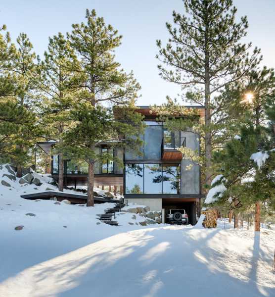 «Форма, площа основи та дизайн інтер'єру цього будинку відображають філософію життя з тим, що нам потрібно — і не більше», — розповіли у студії. Створення будинку, здатного пережити лісову пожежу, було головним завданням. Це стає все більш важливим міркуванням у Колорадо, де великі лісові пожежі стали звичайним явищем. Будинок площею 173 квадратні метри височить на два рівні і розташований поряд зі скелястим оголенням. Нижній поверх прямокутної форми і включає кухню, їдальню та вітальню. На верхньому рівні, що має форму літери L, знаходиться спальня та горище. Спальний обсяг піднімається над схилом пагорба за допомогою сталевих опор. На другому поверсі також знаходиться доріжка, яка проходить через громадську зону та закінчується на балконі, де мешканці можуть милуватися краєвидом.