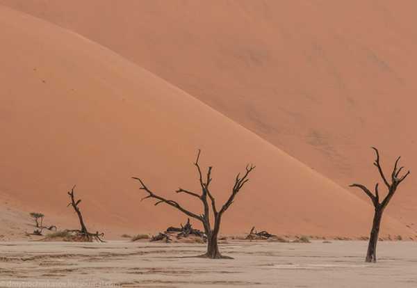 Масштаб навколишніх дюн ви можете оцінити на цьому знімку. Найвища з них має назву «Великий Тато» («Big Daddy»). Її висота становить близько 400 метрів. Якщо є охота, то на її пік можна видертися. Однак, звісно, найдивовижніше видовище очікує на вас біля підніжжя.