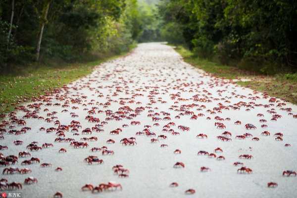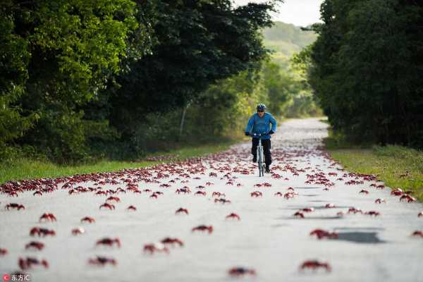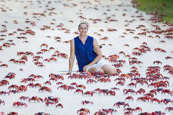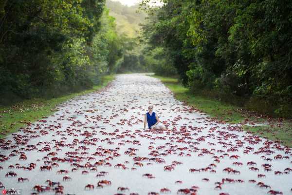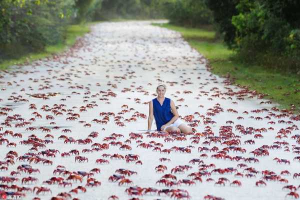 40-річна Кірсті Фолкнер стала свідком щорічної міграції червоних крабів на острові Різдва. Масова міграція приблизно 45 мільйонів ракоподібних починається на початку сезону дощів у жовтні чи листопаді кожного року. Дорослі краби залишають свої нори у джунглях та поспішають на пляж для купання в океані, щоб поповнити запаси солі в тілі та залишити потомство.