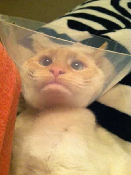 Іноді кішкам і собакам з різних причин доводиться носити захисні коміри, але найчастіше для того, щоб вони не лизали рану, яка ніяк не заживе, або що-небудь.