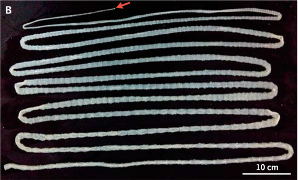 У Китаї лікарі витягли цього 6-метрового стрічкового хробака з хлопця, який любив поласувати сирою яловичиною