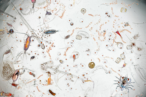 Крапля морської води під мікроскопом зі збільшенням у 25 разів