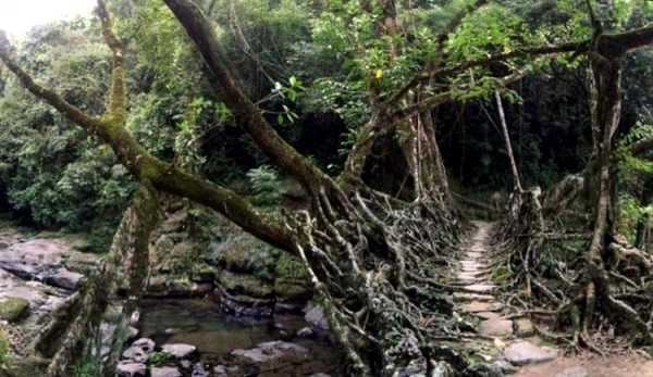 Мости, сконструйовані з живого коріння дерев, не є великою рідкістю для Індії. Такі мости не будують, їх у буквальному сенсі вирощують із потужного коріння каучукового дерева. Щоб почати вирощувати міст, досить просто перекинути через річку дротяний каркас і уважно стежити, щоб могутнє коріння дерев рівномірно його обплітало. На «будівництво» такого мосту може знадобитися кілька десятиліть, у довжину мости з живого коріння дерев можуть становити десятки метрів. Авторами такої незвичайної технології будівництва мостів є представники племені хасі, ще сотні років тому вони таким чином налагоджували комунікації між берегами стрімких річок.